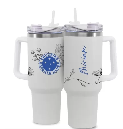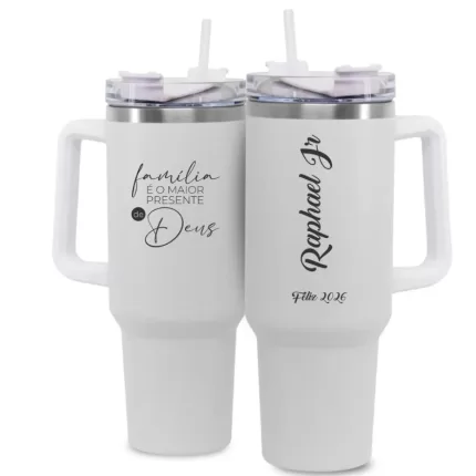 Copo com canudo tipo Stanley personalização completa